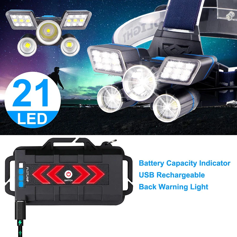Best For You T20 LED Headlamp High Lumens Ultra Bright 21LED 9 Modes Headlight USB Rechargeable Flashlight Water
