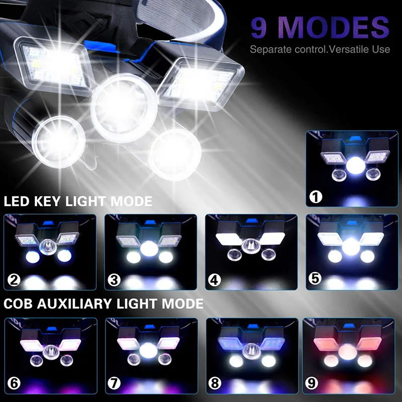 Headlamp High LumensT6+4Q5/T6+2Q5 Ultra Bright LED Headlight 4 Modes Rechargeable Waterproof Outdoor Fishing Flashlight Hunting : Click here