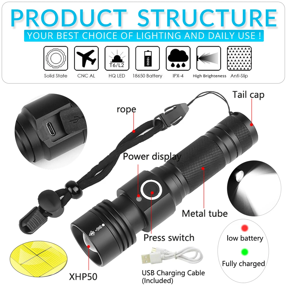 5000 Lumens XHP50 V6 18650 battery powerful linterna led zaklamp Tactical LED Flashlight Zoomable Torchlight Best Camping : Click here