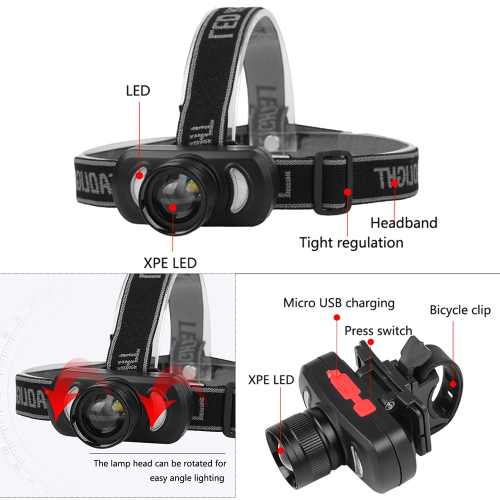 Super Powerful Headlamp Red Light Blue Light Head Light USB Rechargeable Headlight Zoom Head Lamp W only US $6.09